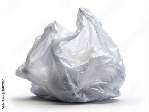A clear, translucent plastic bag with a subtle sheen, gently crumpled and folded, isolated on a stark white or transparent background, awaiting contents.