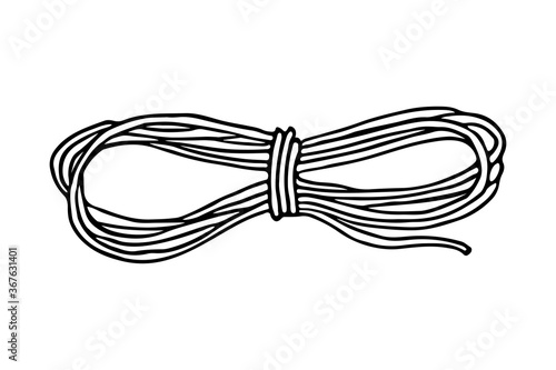 A climbing rope for camping doodle hand drawn black isolated icon. A string for hiking, local tourism illustration