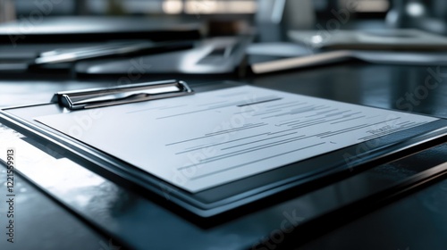 A clipboard and pen sitting on a desk, perfect for office or workspace use