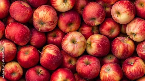 A close up image of several red apples showing their skin texture and details. Seamless pattern.