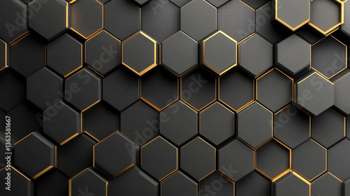 A close up of a black and gold hexagonal pattern creating a modern and luxurious background design