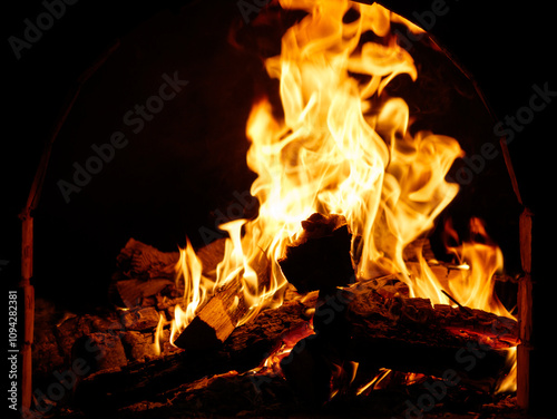 A close up of a fire with the flames reaching up to the top of the image