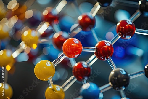 a close up of a molecule with many colored balls, Examine the properties of coordination compounds