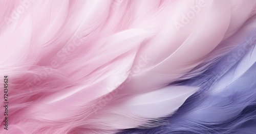 A close up of a pink and blue feather. Generative AI.