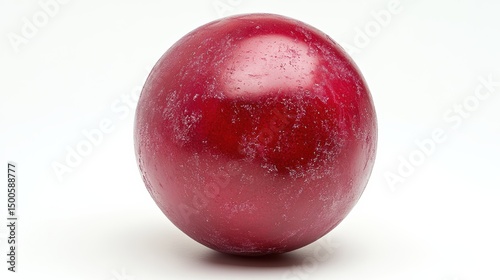 A close up of a red sphere with a textured surface against a simple white background studio shot