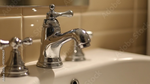 A Close Up of a Shiny Chrome Faucet in a Bathroom
