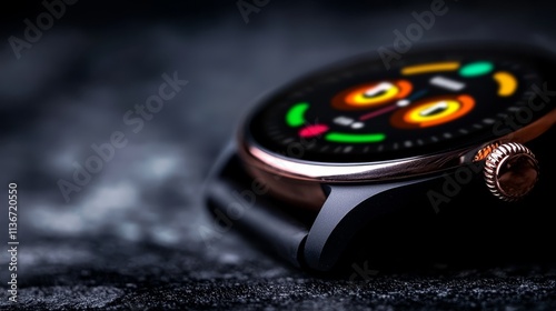 A close up of a smart watch on a black surface