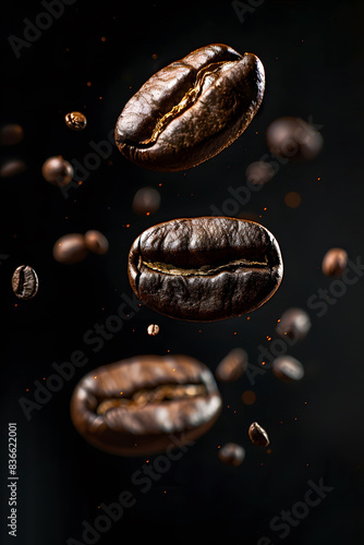 A close up of coffee beans falling from the sky