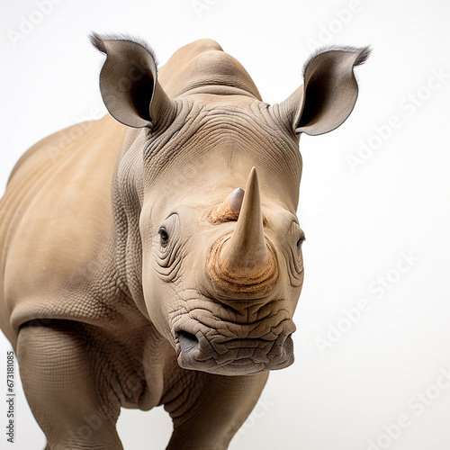 a close up photo of a Rhino portrayed in studio on a white background created with Generative Ai