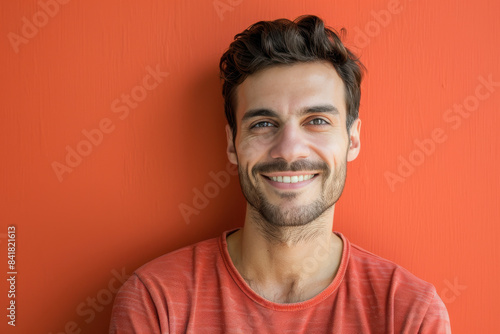 A close up portrait of a young man with a subtle smile