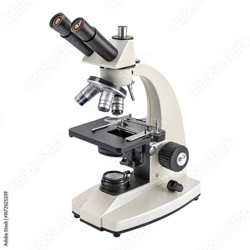 A close up shot of a laboratory microscope with dual eyepieces on a black background in sharp focus created with generated ai