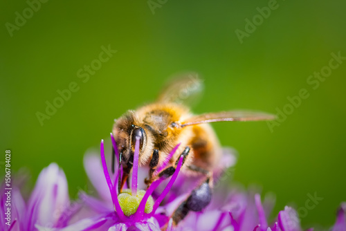 A CloseUp Image of a Bee in the Act of Pollinating a Bright and Vibrant Purple Flower