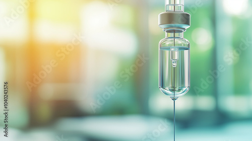 A close-up image of a medical intravenous (IV) drip, showcasing the clear fluid flowing through the IV line against a soft hospital background, highlighting the critical role of IV