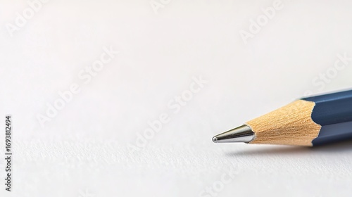 A close-up image of a sharpened pencil resting on a blank surface, highlighting its pointed tip and wooden body.
