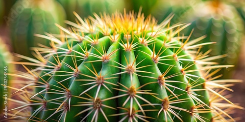 A close-up image of a spiky cactus plant, spiky, prickly, thorns, desert, plant, green, nature, sharp, texture, spikes