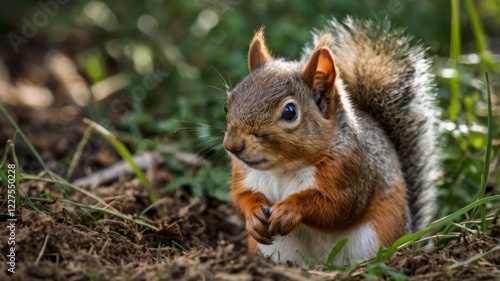 A close-up image of a squirrel peeking out from its burrow, showcasing its curious expression and fluffy fur.