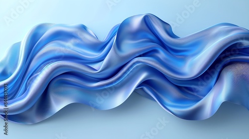 A close-up image of blue satin fabric draped and flowing on a light blue background