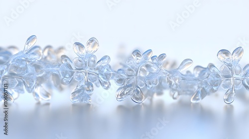 A close-up image of delicate ice crystals representing the beauty of winter. The intricate design of the snowflakes reflects a serene and tranquil atmosphere.