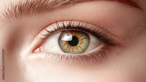 A close-up of a beautifully detailed eye with a striking green iris and defined eyelashes, showcasing natural beauty and intricate textures.