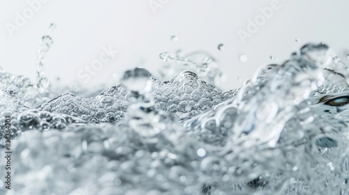 A close-up of a bubbling spring of water, with clear bubbles rising, set against a clean white backdrop