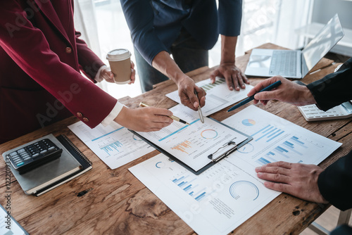 A close-up of a businessman explaining finance, business planning, and marketing during a meeting at the table,demonstrating teamwork and collaboration to achieve strategic goals successful outcomes