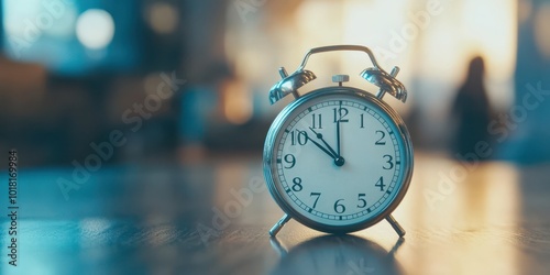 A close-up of a classic alarm clock on a wooden surface, capturing the essence of time management and punctuality.