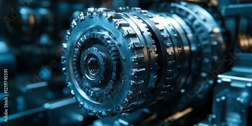 A close-up of a CNC machine tool in an industrial setting. Perfect for manufacturing, engineering, and advanced technology visuals.