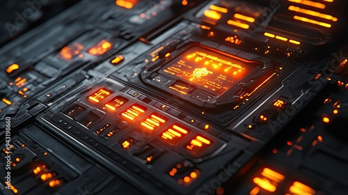 A close-up of a communication device with glowing indicators, representing advanced technology.