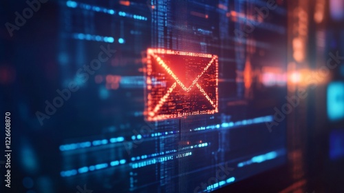 A close-up of a computer screen showing a phishing email alert, warning of potential online scams and cybercrime threats.