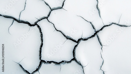A close-up of a cracked surface, showcasing intricate lines and patterns against a light background.