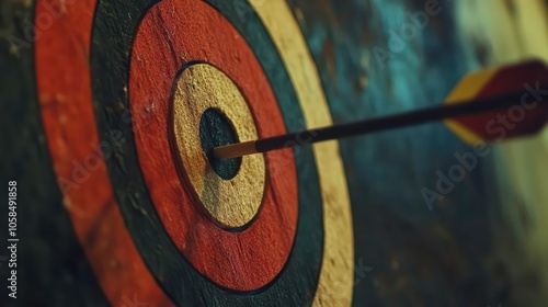 A close-up of a dartboard with an arrow embedded in the bullseye, symbolizing precision.