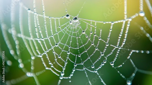 A close-up of a dew-covered spider web, showcasing intricate patterns and droplets.