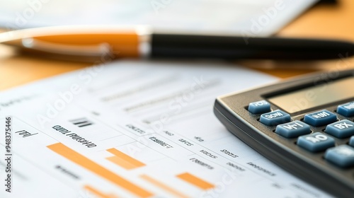 A close-up of a document showing insurance premium amounts, with a calculator and pen nearby.