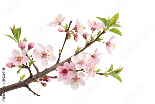 A close-up of a flowering cherry branch, showcasing intricate petals and emerging buds, capturing the gentle elegance of nature’s seasonal awakening, isolated on a transparent background