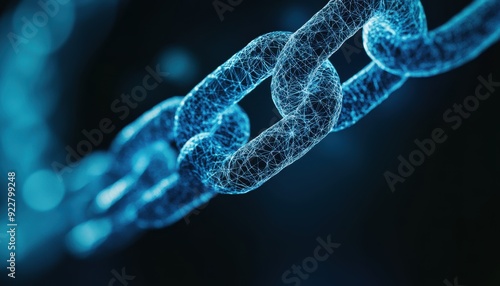A close-up of a glowing blue chain link, representing strength, connection, and technology in a modern digital world.