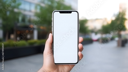 A Close-up of a Hand Holding a Smartphone with an Empty Screen Mockup