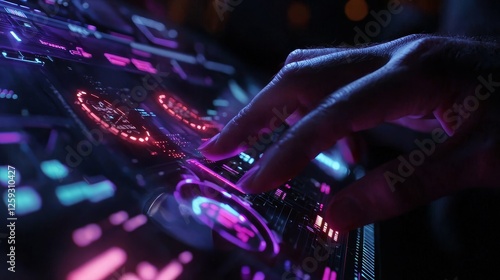 A close-up of a marketer's hand using a futuristic holographic touchscreen displaying real-time email analytics, glowing data points, sleek interface, Neon Futuristic Style