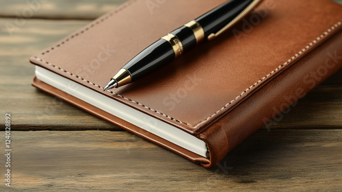 A close-up of a notebook and pen for working office