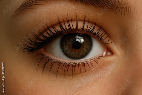 A close-up of a person's eye, showcasing the intricate details of their eyelashes and the reflective quality of their irises