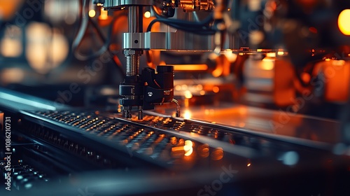 A close-up of a precision machine tool in action, highlighting its intricate components.