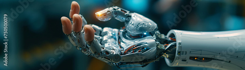 A close-up of a robotic hand, showcasing its intricate design and advanced technology. This image embodies the potential of robotics to revolutionize various fields, from manufacturing to healthcare.