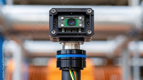 A closeup of a sensor mounted on a riser segment focusing on the technology that monitors structural integrity and environmental conditions in real time..