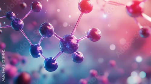 A Close-up of a Shiny, Multi-Colored Molecular Structure Against a Blurry Pink Background