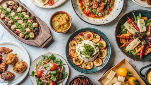 A close-up of a variety of delicious dishes spread out on a table in a restaurant setting, food, collection, restaurant, menu