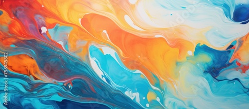 A closeup of a vibrant painting on the wall, showcasing an orange sky and a geological phenomenon in the natural landscape, creating a beautiful pattern