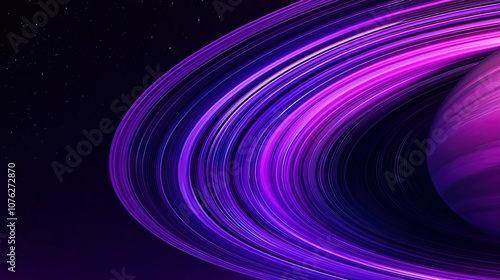 A close-up of a vibrant purple planet with rings in a dark space with a few stars in the background.