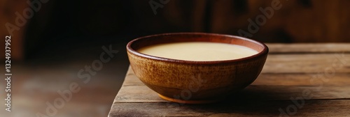 A close-up of a warm bowl filled with creamy soup resting on a rustic wooden table, inviting comfort and warmth, perfect for the cozy dining experience.