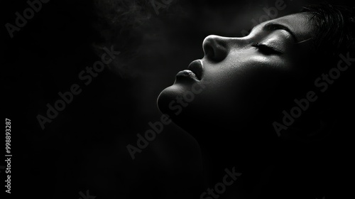 A Close-up of a Woman's Face with Eyes Closed and Smoke in the Background