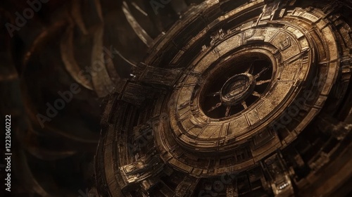 A close-up of aged, intricate gears and cogs in a steampunk design, featuring rustic tones and fine mechanical details.