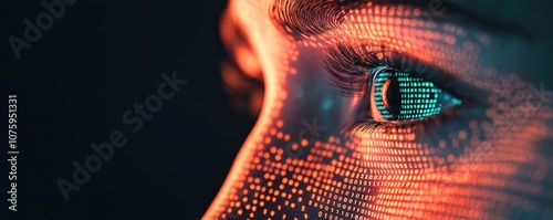 A close-up of an eye reflecting digital data, emphasizing the connection between vision and technology in a vibrant, futuristic style.